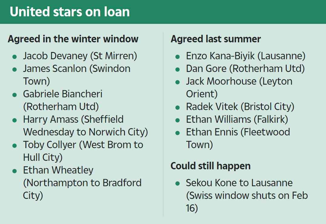 这让曼联冬窗外借球员的人数提升到了6人,本赛季俱乐部两个转会窗总共租借球员到其他球队锻炼的人数共计12人,化身为出租狂魔!